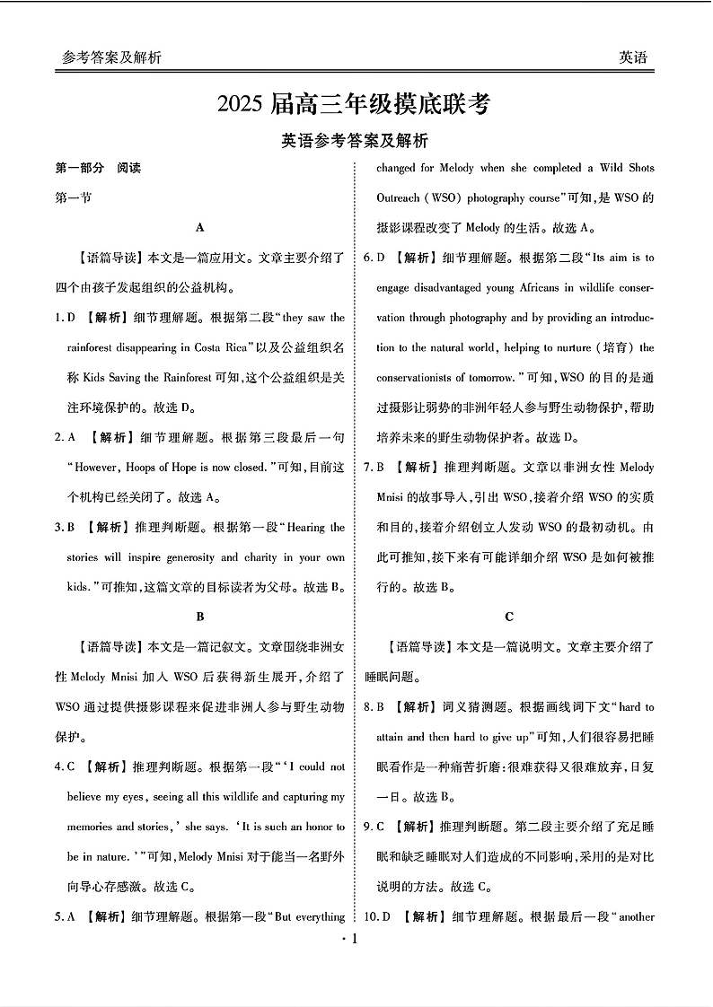 广东省衡水金卷2025届高三年级上学期8月摸底联考+英语答案
