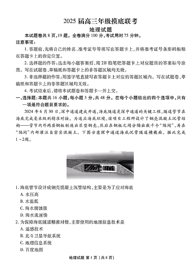 广东省衡水金卷2025届高三年级上学期8月摸底联考+地理