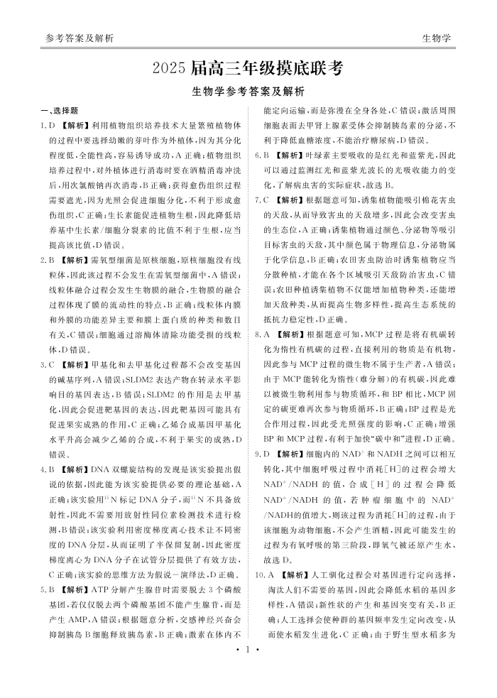 广东省衡水金卷2025届高三年级上学期8月摸底联考+生物答案