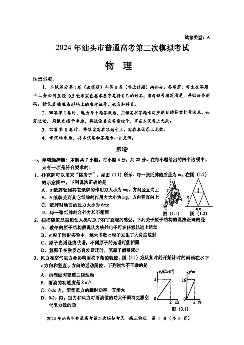 2024年汕头市普通高考第二次模拟考试+物理