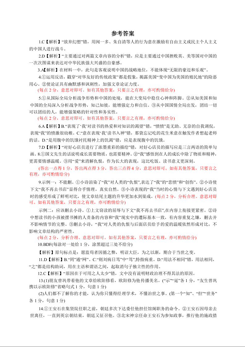 2025届广东衡水金卷新高三8月开学联考+语文答案