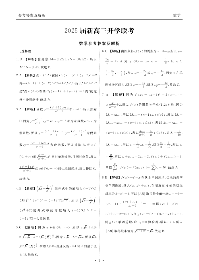 2025届广东衡水金卷新高三8月开学联考+数学答案