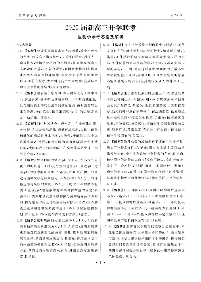 2025届广东衡水金卷新高三8月开学联考+生物答案