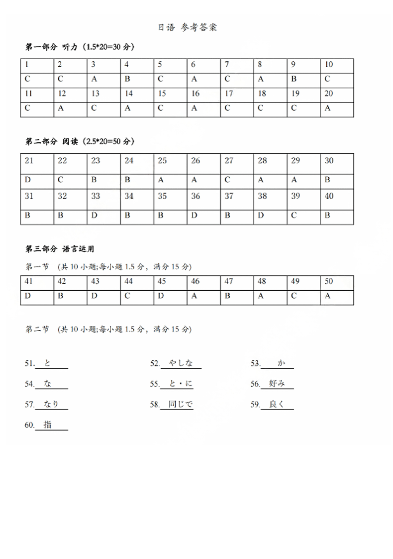 广东省2025届广州市高三年级阶段训练暨8月摸底考试(市调研考)日语答案