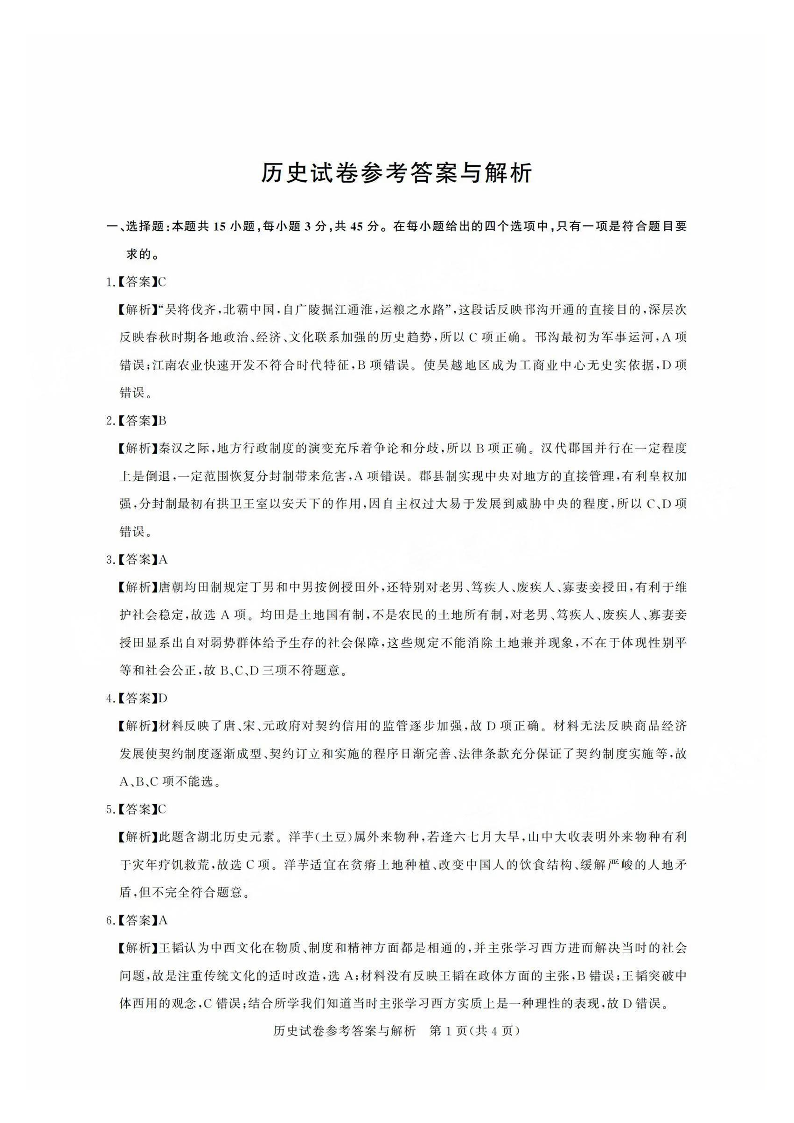 广东省2025届广州市高三年级阶段训练暨8月摸底考试(市调研考)历史答案