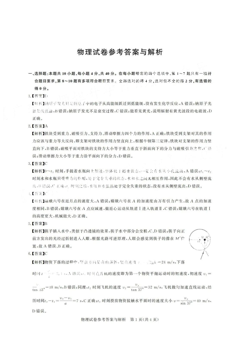 广东省2025届广州市高三年级阶段训练暨8月摸底考试(市调研考)物理答案