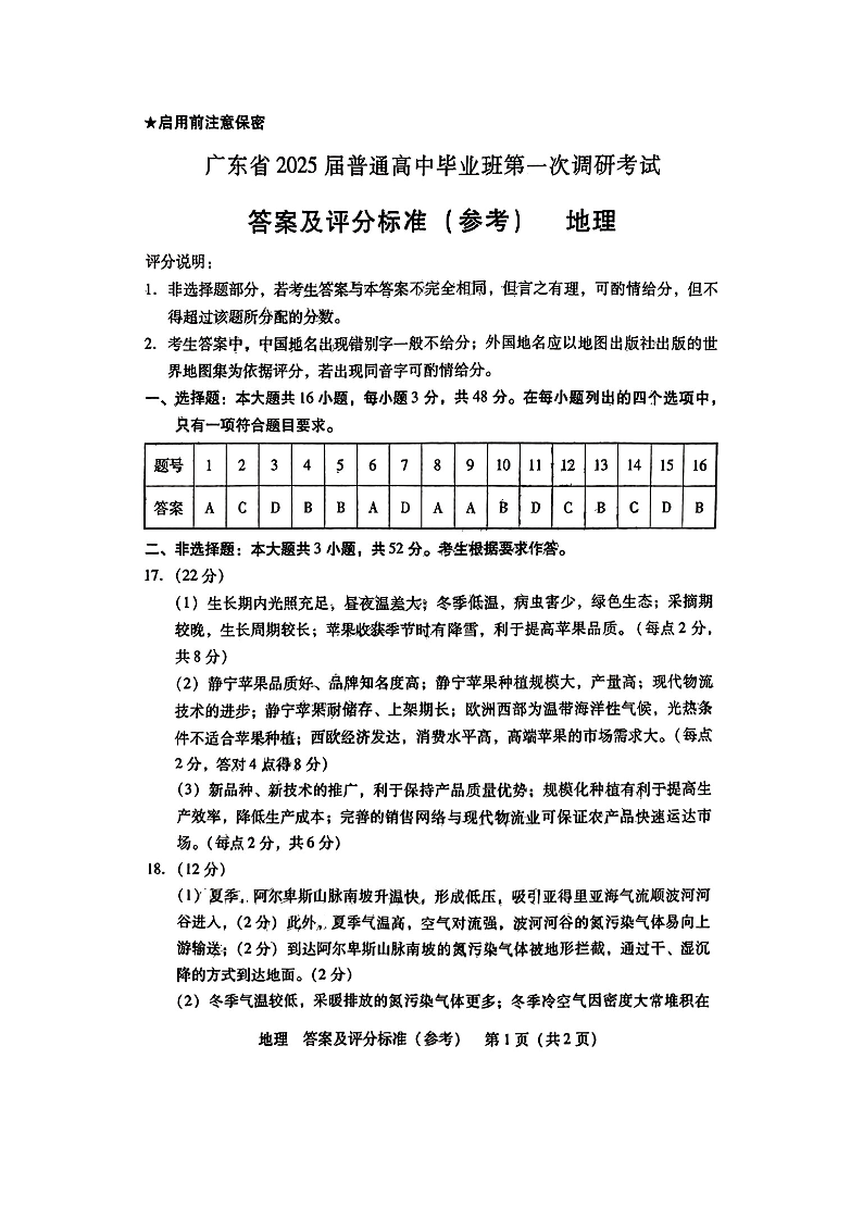 广东省2024-2025学年高三上学期毕业班第一次调研考试+地理答案