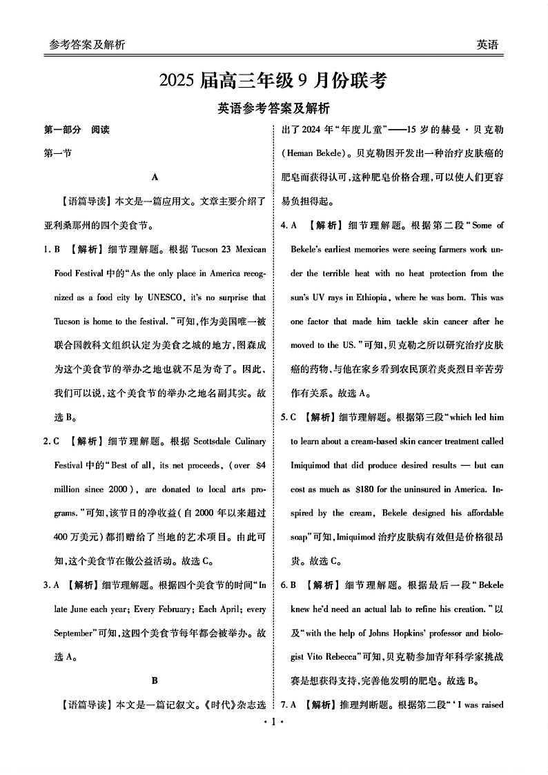 广东省2025届高三年级衡水9月份大联考+英语答案