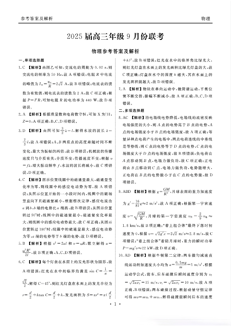 广东省2025届高三年级衡水9月份大联考+物理答案