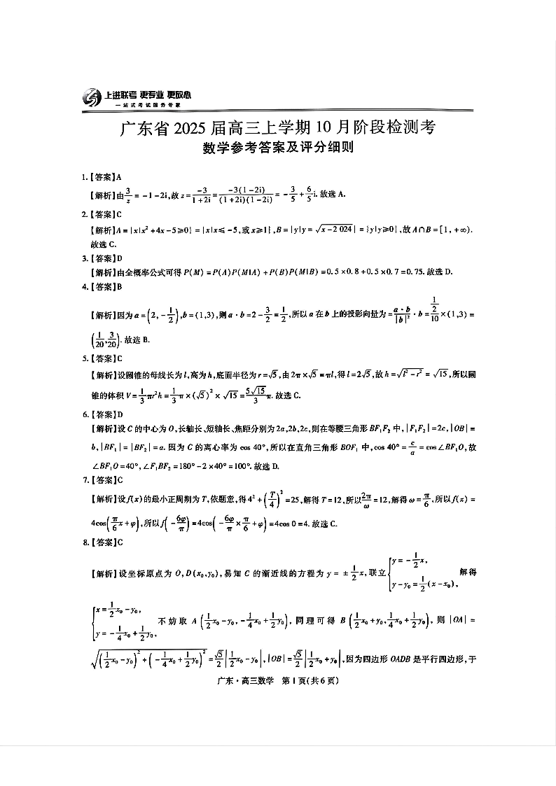 广东省2025届高三上学期10月阶段检测考+数学答案