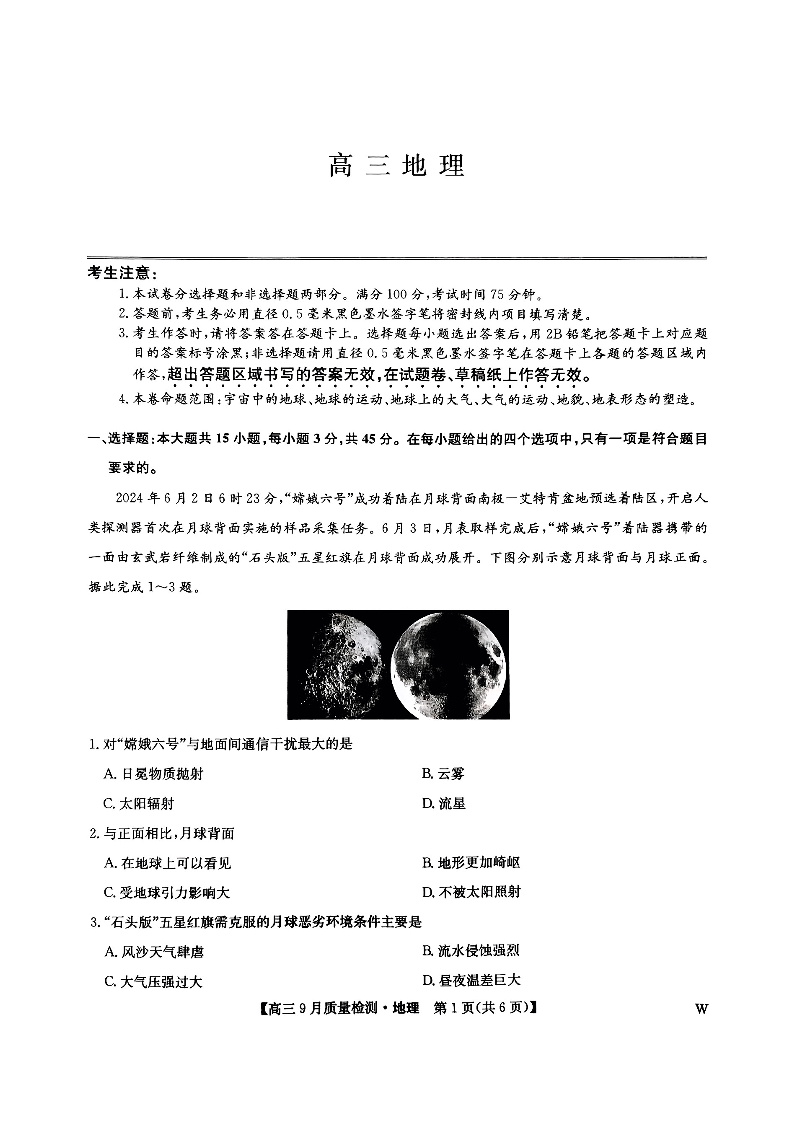 九师联盟2025届高三9月质量检测+地理