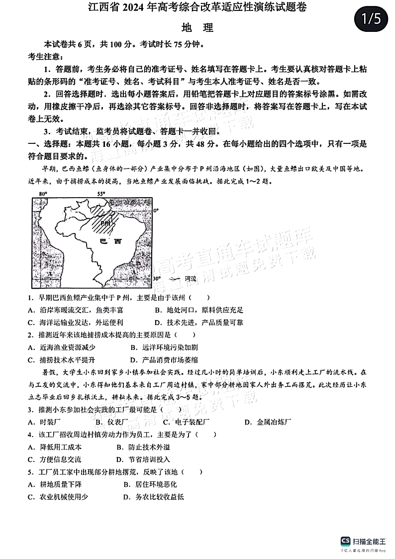 【地理】江西版2024年九省联考