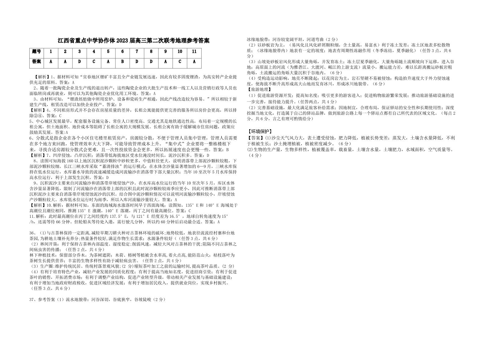 江西省重点中学协作体2023届高三第二次联考 文综答案