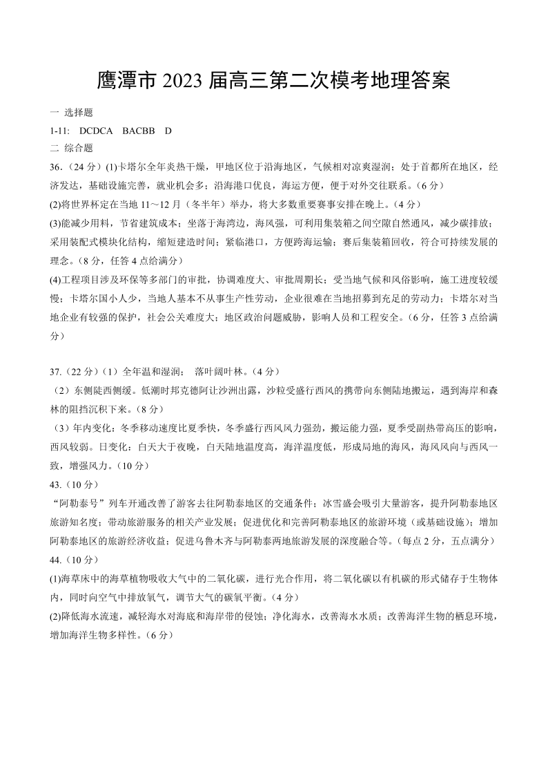 鹰潭市2023届高三第二次模拟考试 文综答案