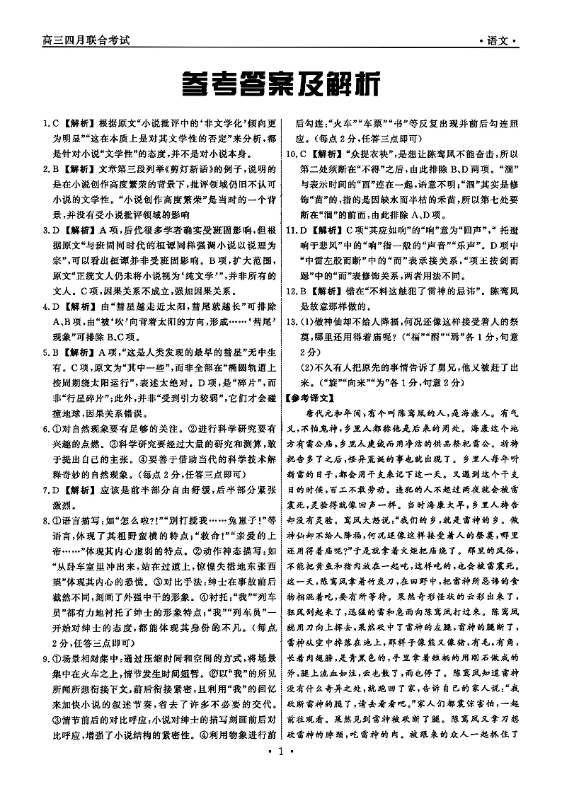 江西省赣抚吉十一校联盟体2023届高三4月联考 语文答案