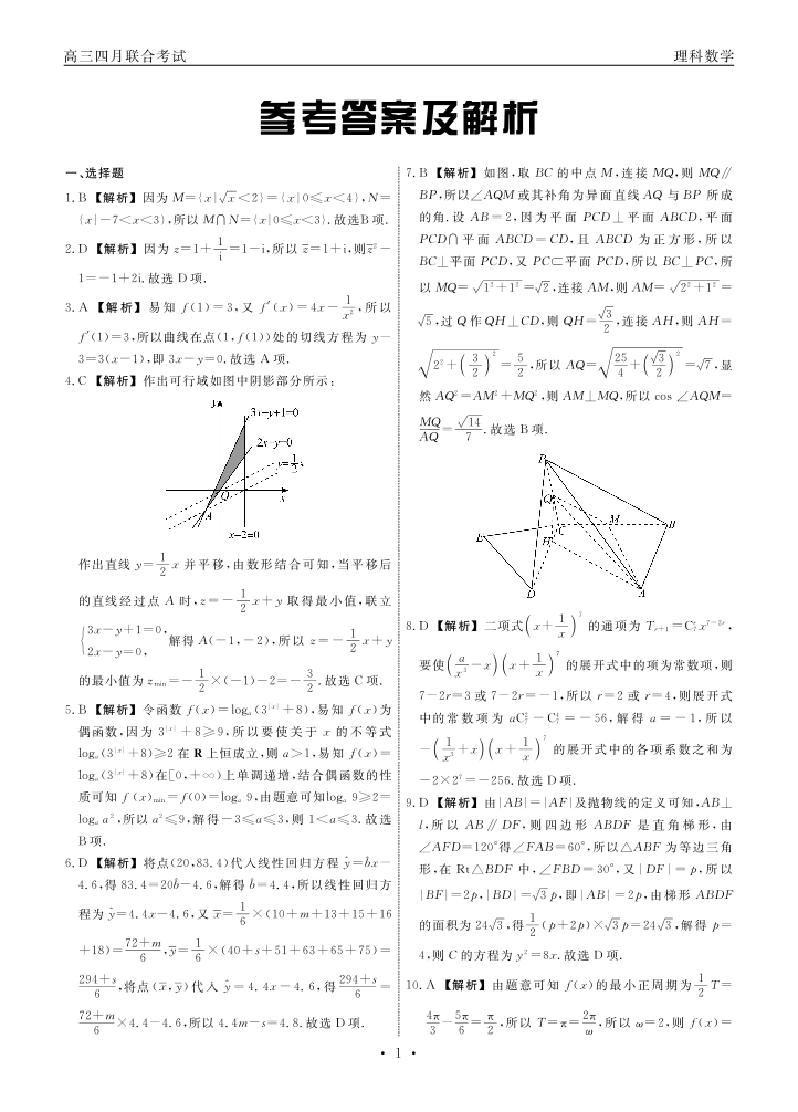 江西省赣抚吉十一校联盟体2023届高三4月联考 理数答案