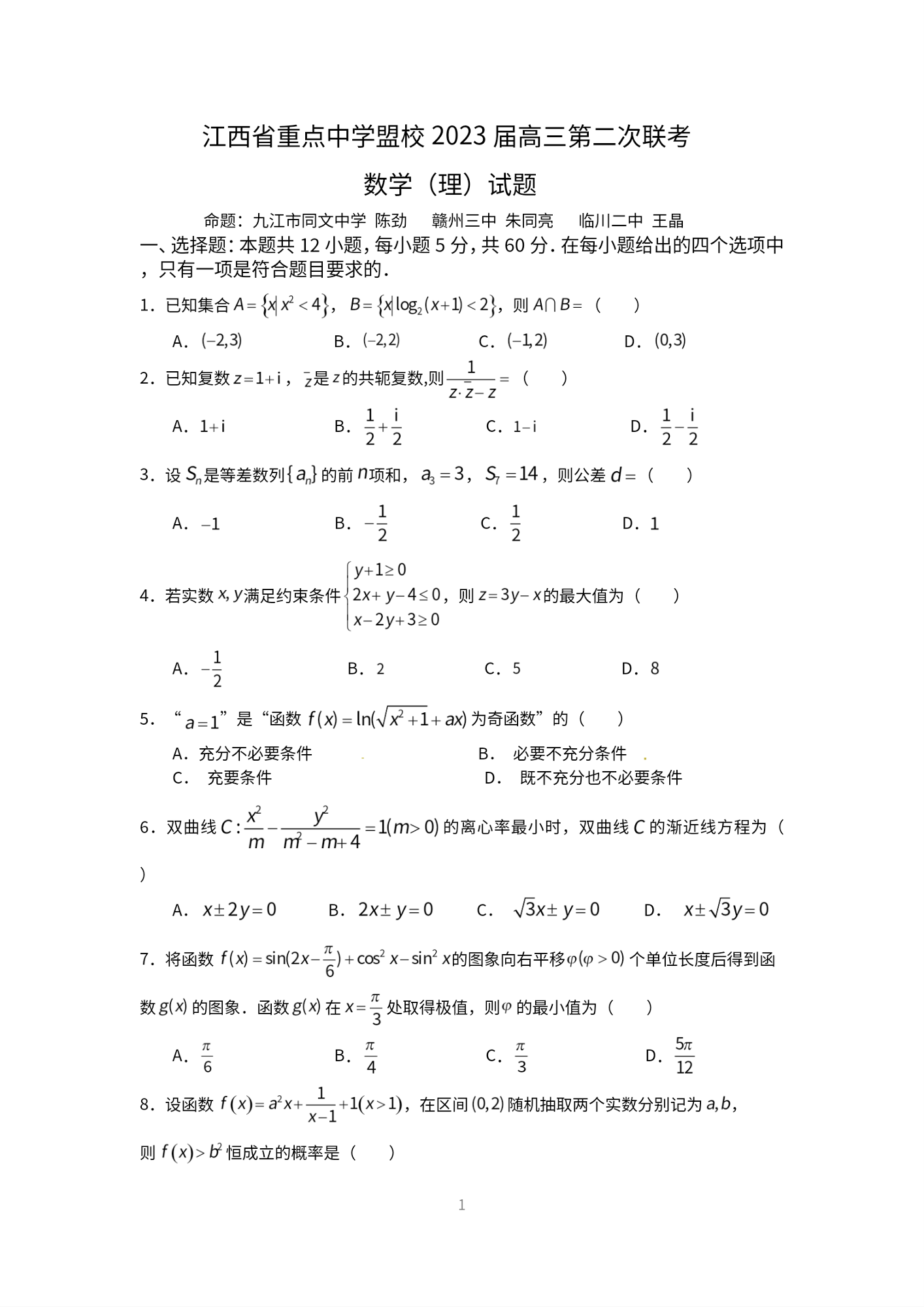 江西省重点中学盟校2023届高三第二次联考 理科数学