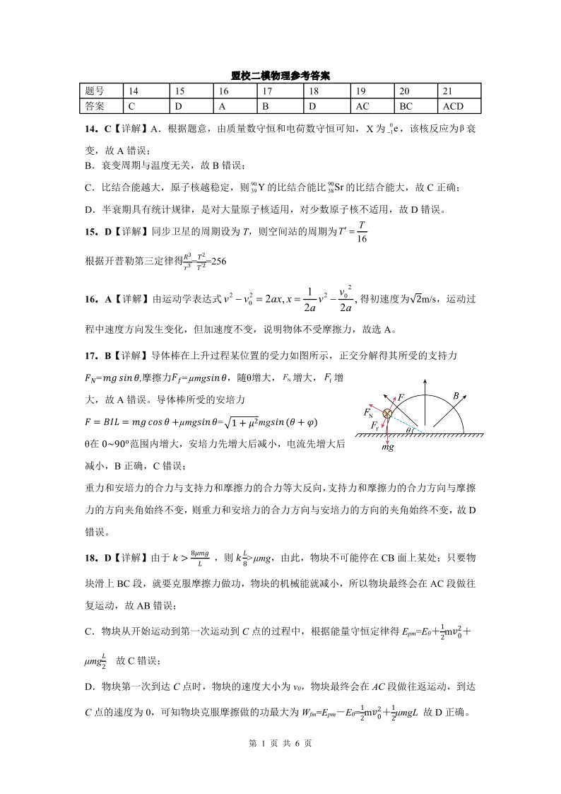 江西省重点中学盟校2023届高三第二次联考 理综物理答案