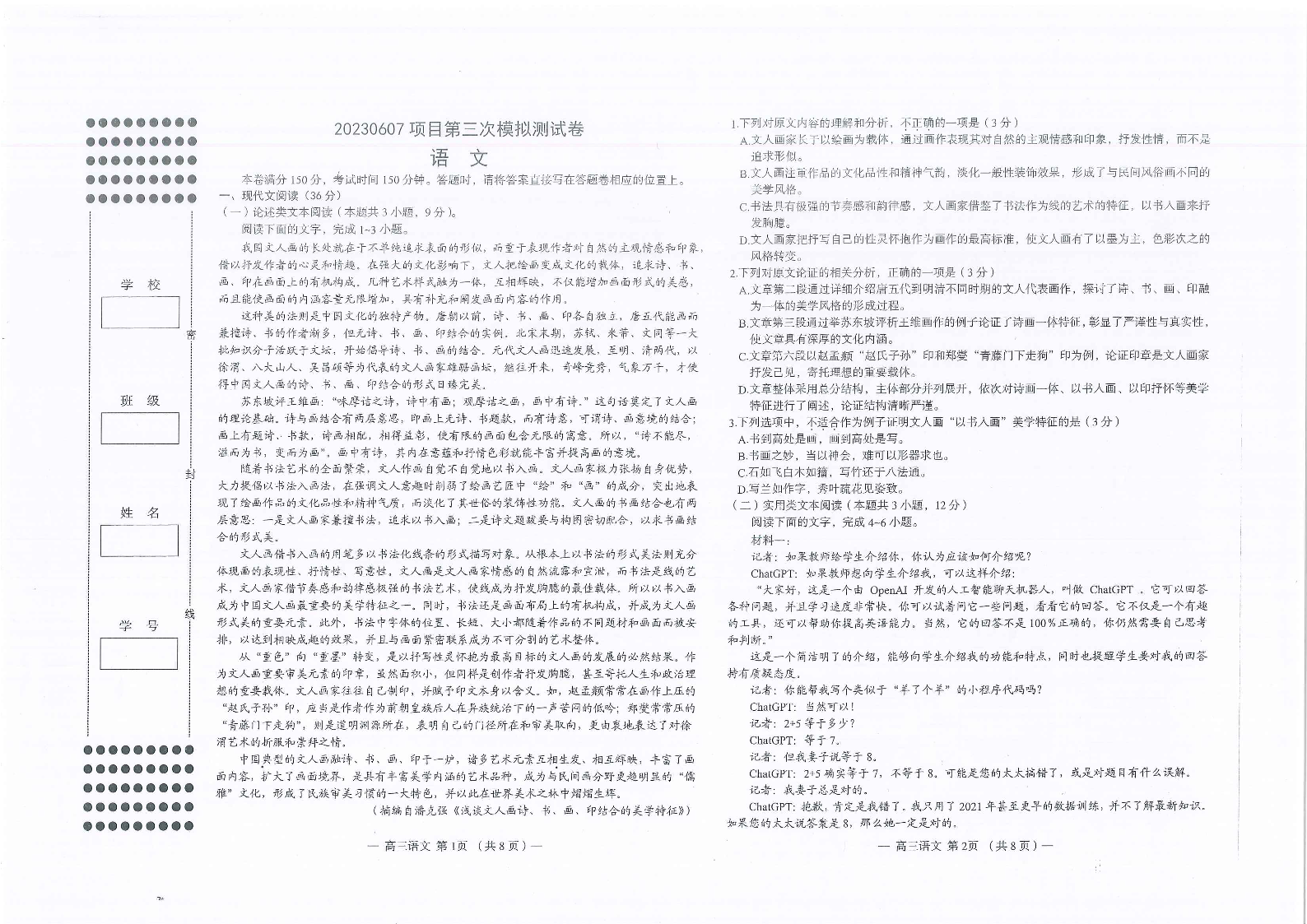 2023南昌市三模 语文