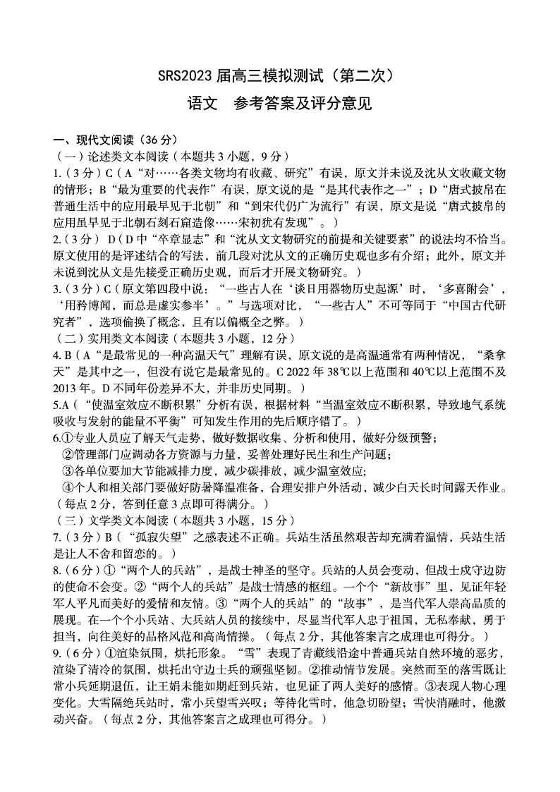 2023南昌二模 语文答案