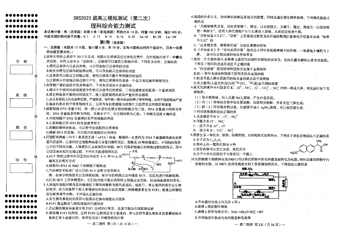 2023南昌二模 理科综合