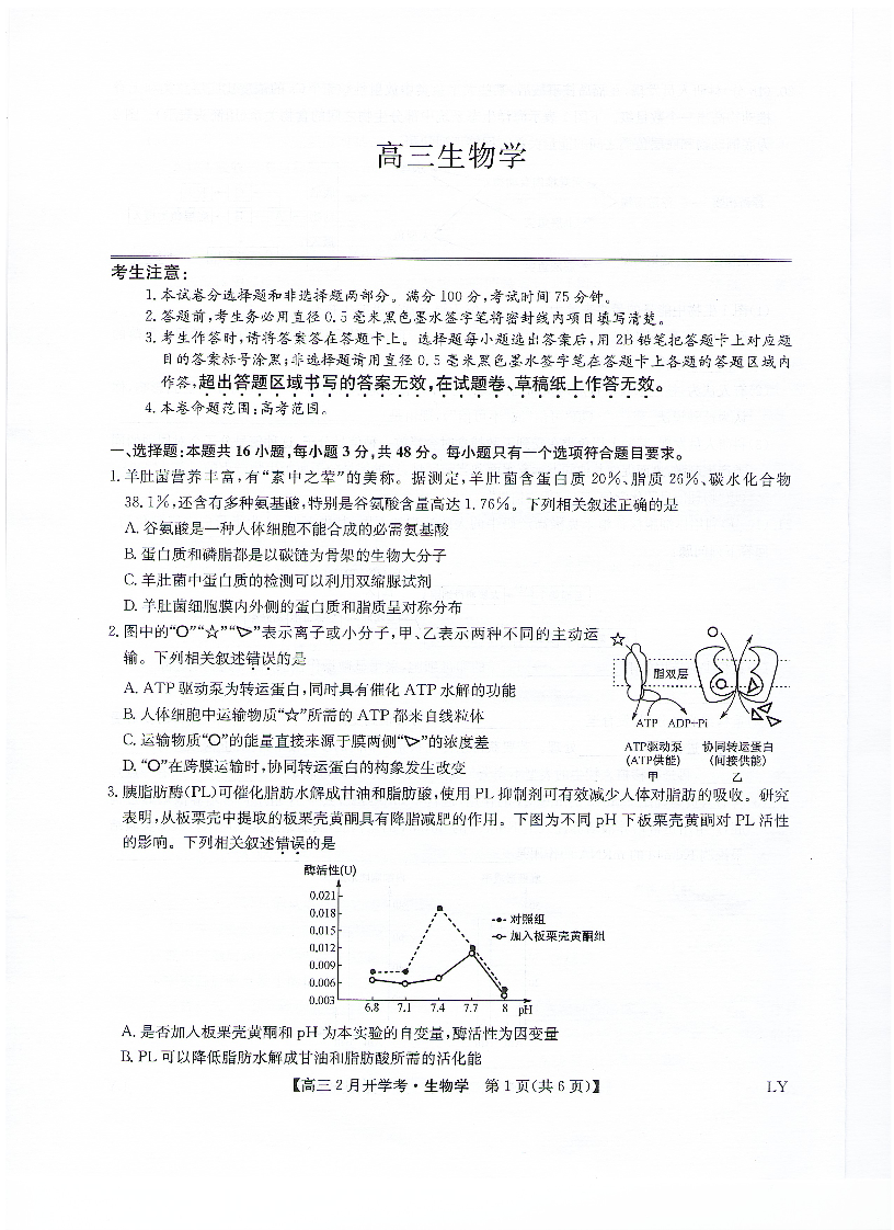 九师联盟2023-2024学年下学期高三2月开学考试 生物