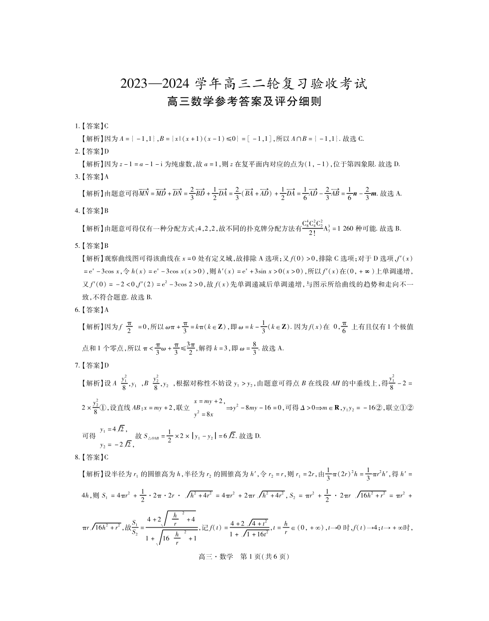 江西稳派2023-2024学年高三二轮复习验收考试+数学答案