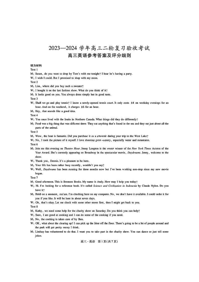 江西稳派2023-2024学年高三二轮复习验收考试+英语答案