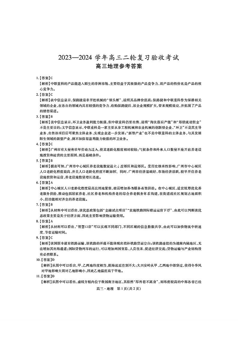 江西稳派2023-2024学年高三二轮复习验收考试+地理答案