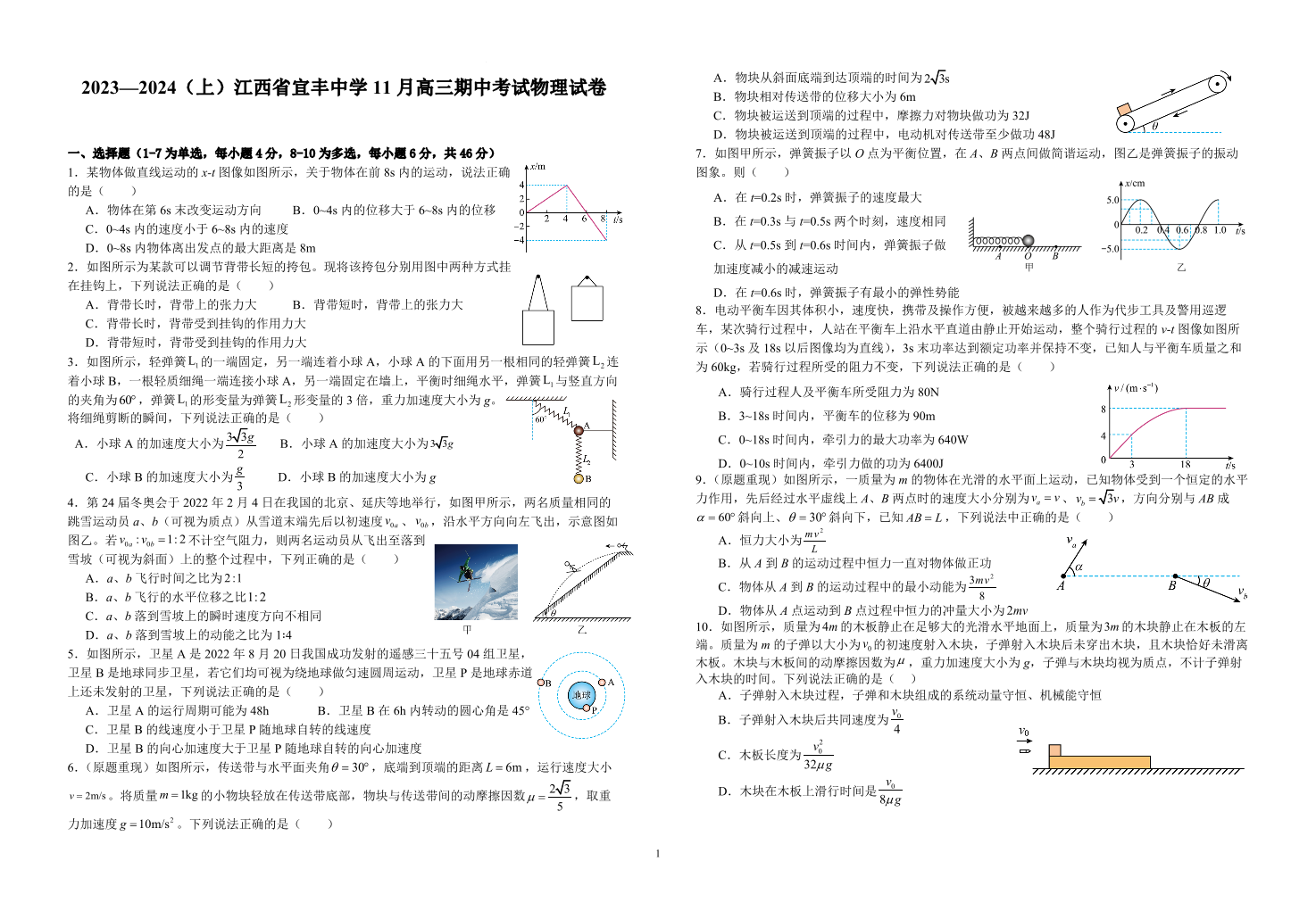 江西省宜丰中学2023-2024学年高三上学期11月期中考试 物理