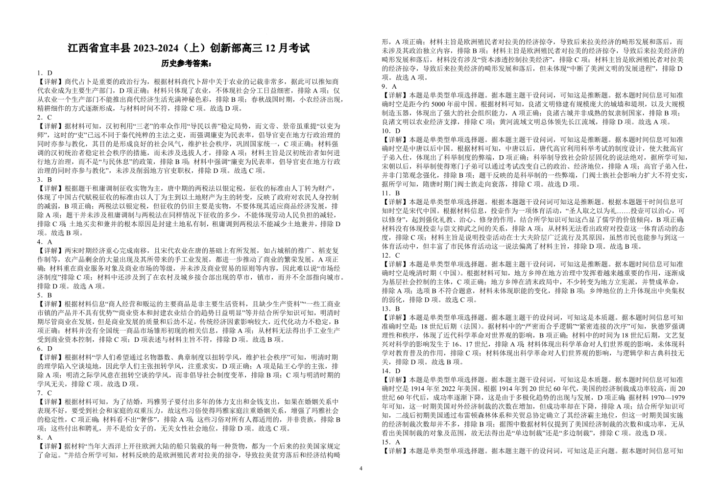 江西省宜春市宜丰中学2024届高三上学期12月月考 历史答案