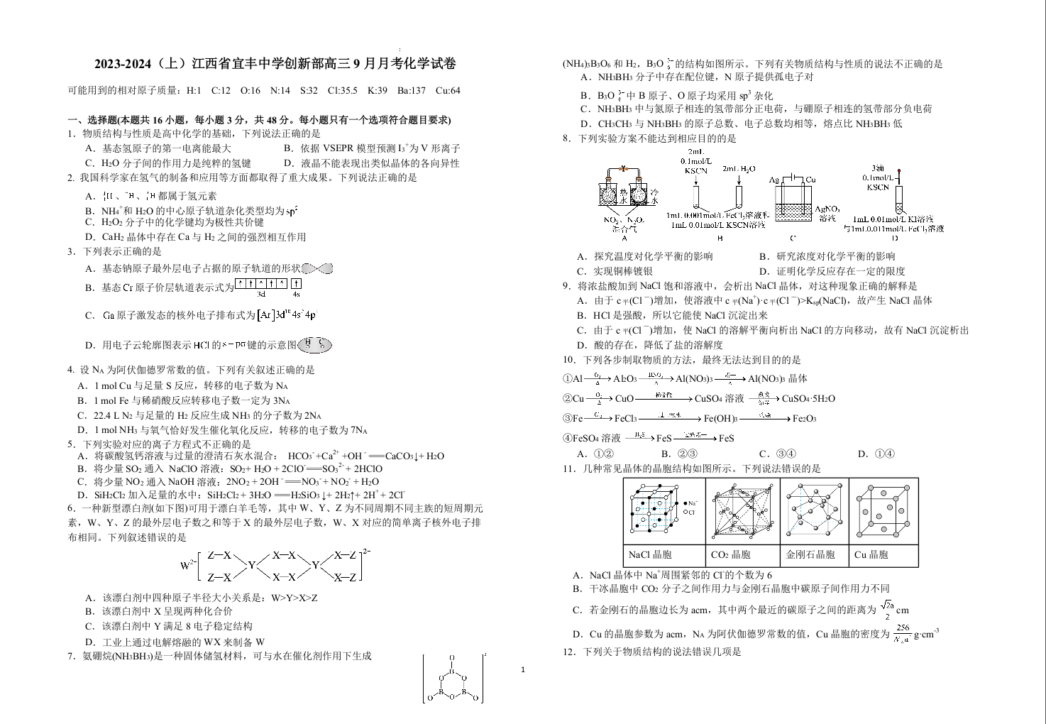 江西省宜春市宜丰县宜丰中学2023-2024学年高三上学期9月月考 化学试题