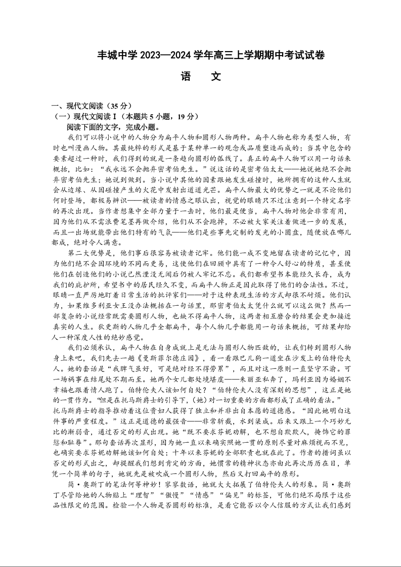 江西省宜春市丰城中学2023-2024学年高三上学期期中考试 语文