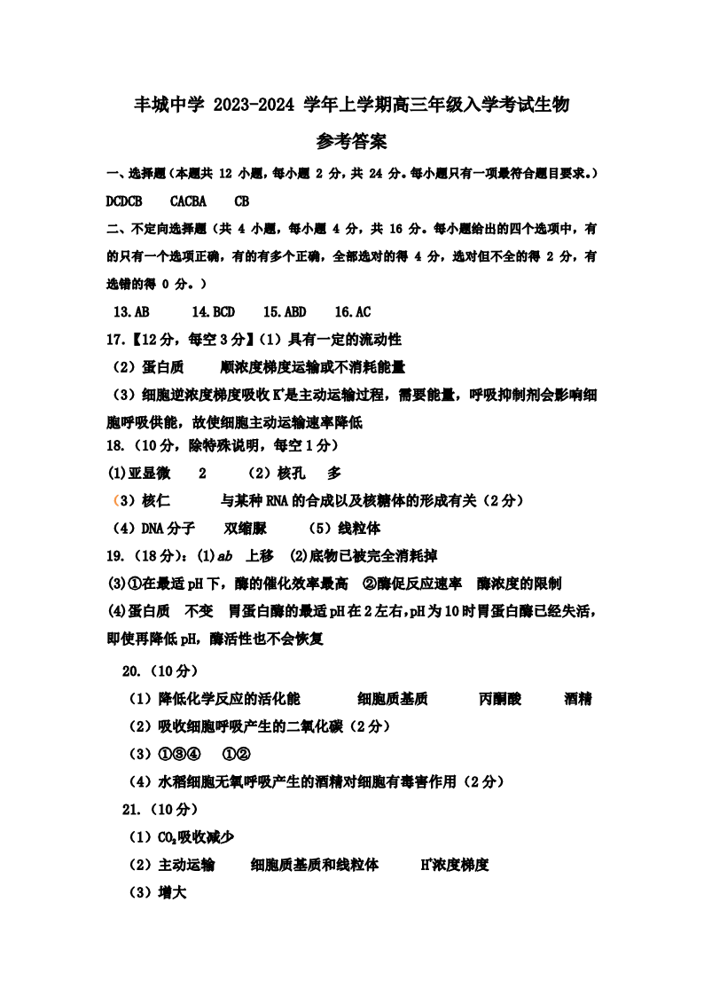 江西省丰城中学2023-2024学年高三上学期开学考试 生物答案