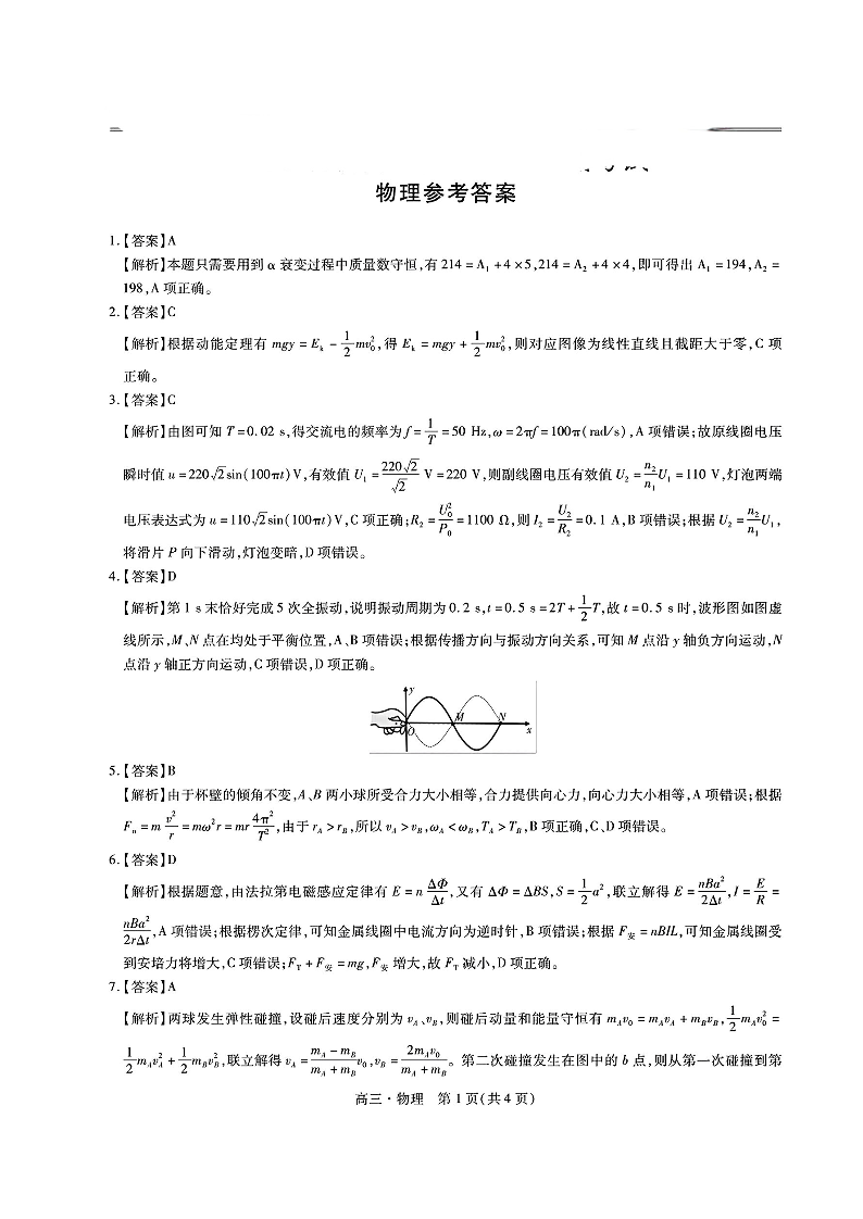 江西省稳派上进2025届新高三秋季入学摸底考试+物理答案