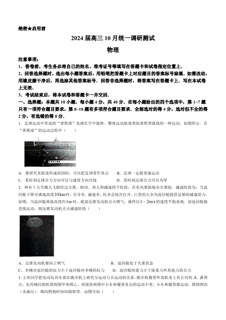 江西省稳派联考2023-2024学年高三上学期10月统一调研测试 物理