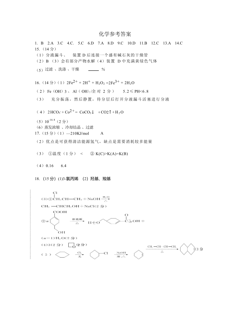 江西省泰和中学2024届高三暑期质量检测 化学答案