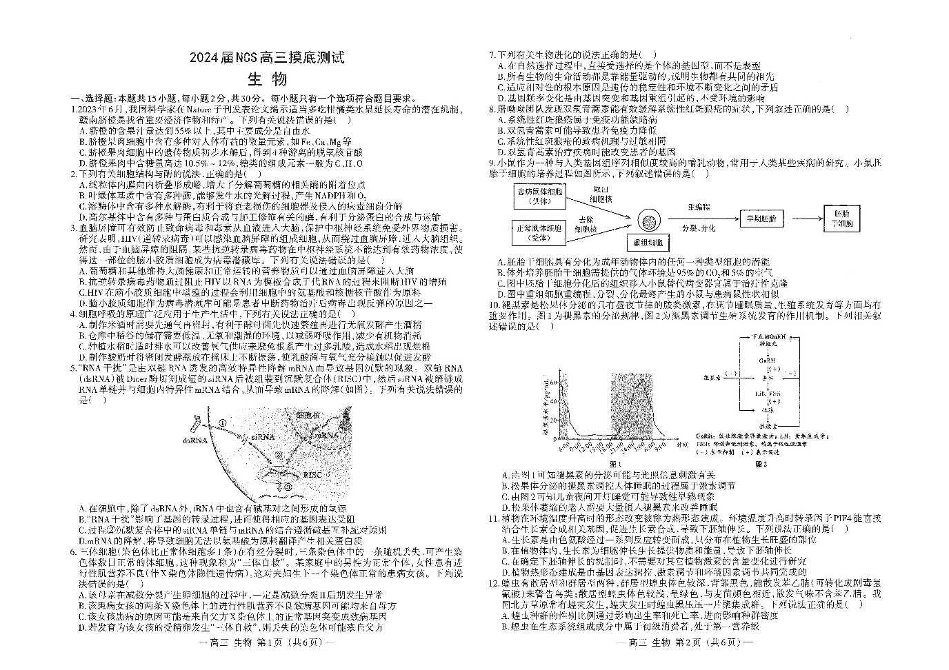江西省南昌市2023-2024学年高三上学期开学考试(南昌零模) 生物