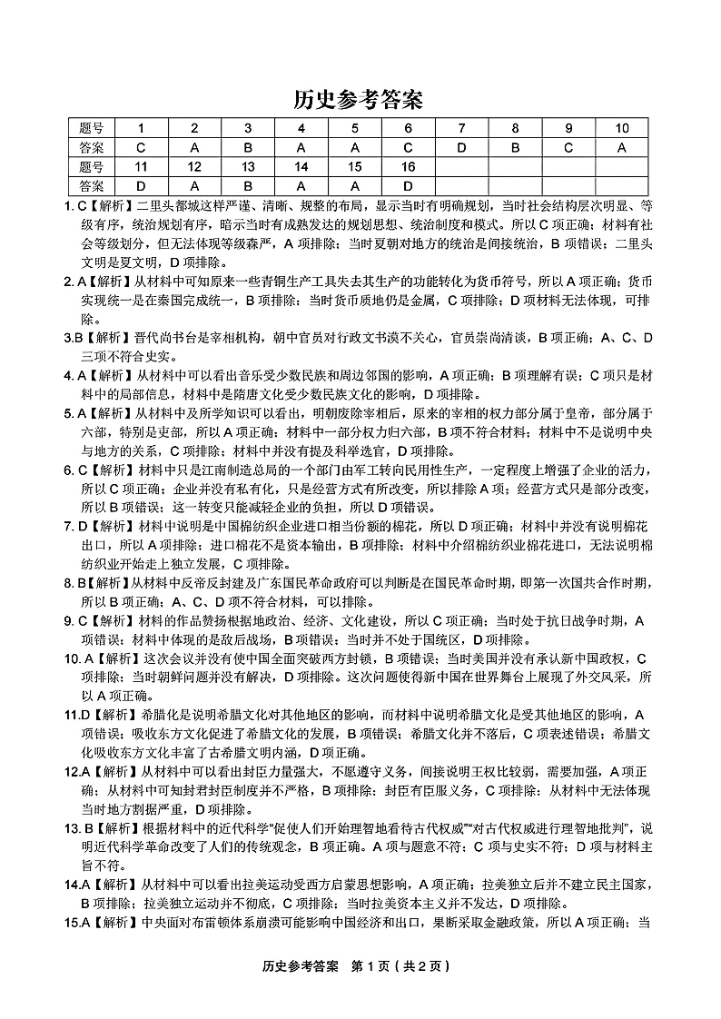 江西省九江市十校2023-2024学年高三第二次联考 历史答案