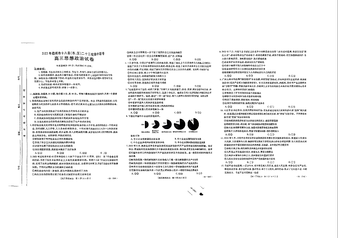 江西省赣州市十八县二十三校2023-2024学年高三上学期期中联考 政治