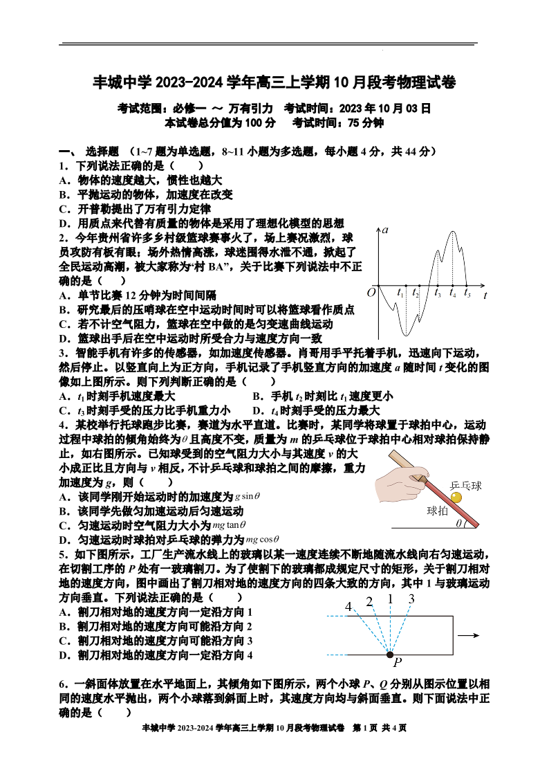 丰城中学2023-2024学年上学期高三第一次段考 物理