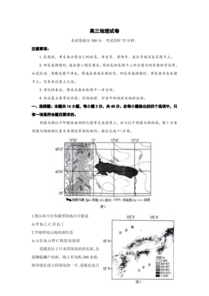 江西省部分高中学校2024届高三9月大联考 地理试卷