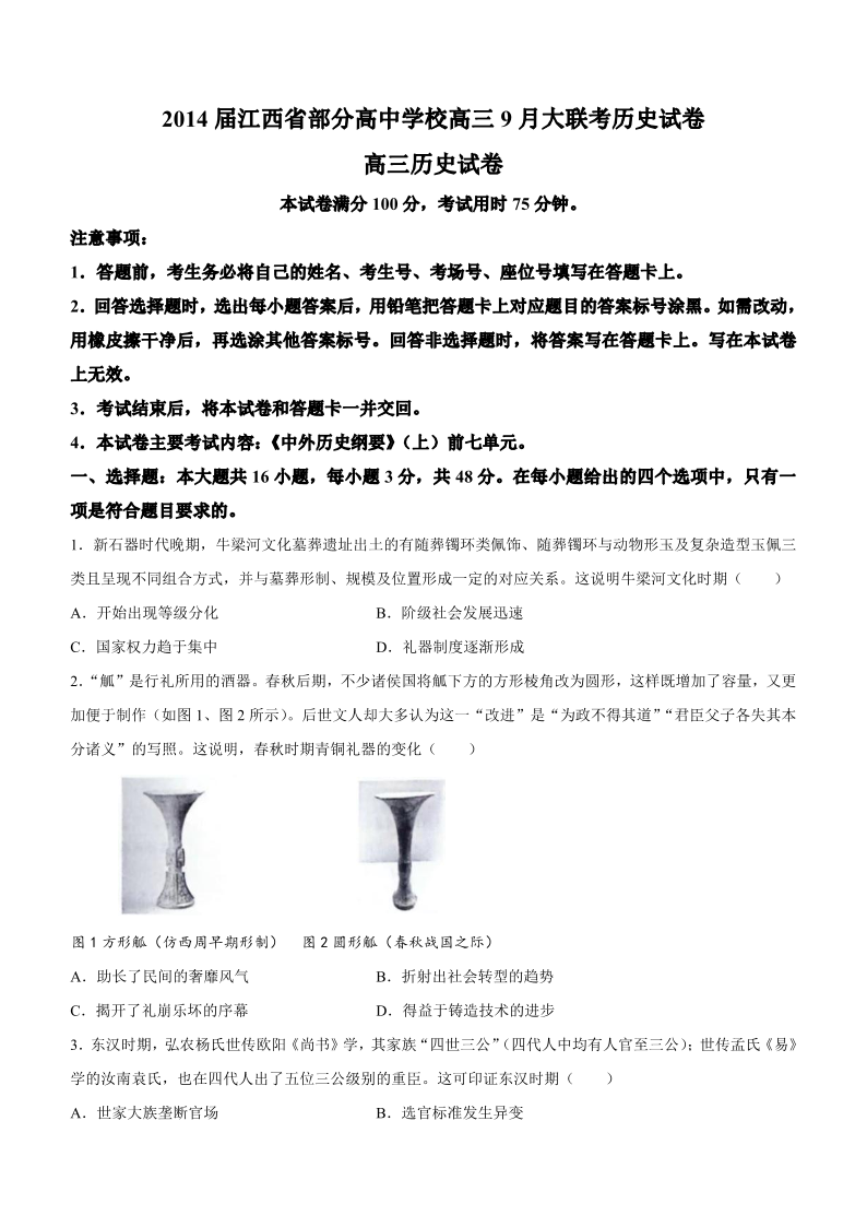 江西省部分高中学校2024届高三9月大联考 历史试卷