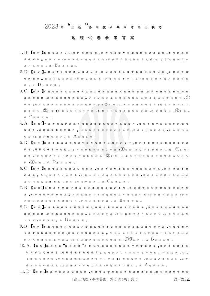 江西省“三新”协同教研共同体2023-2024学年高三上学期12月联考 地理答案