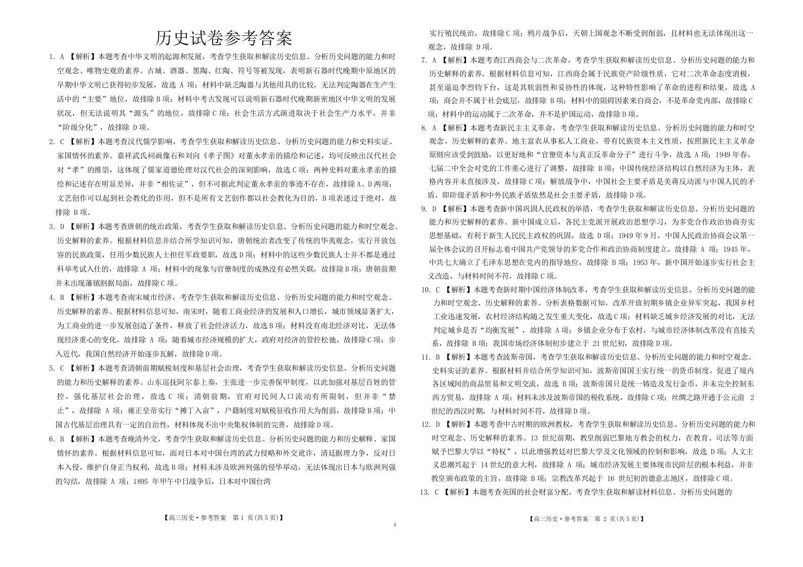 江西省“三新”协同教研共同体2023-2024学年高三上学期12月联考 历史答案