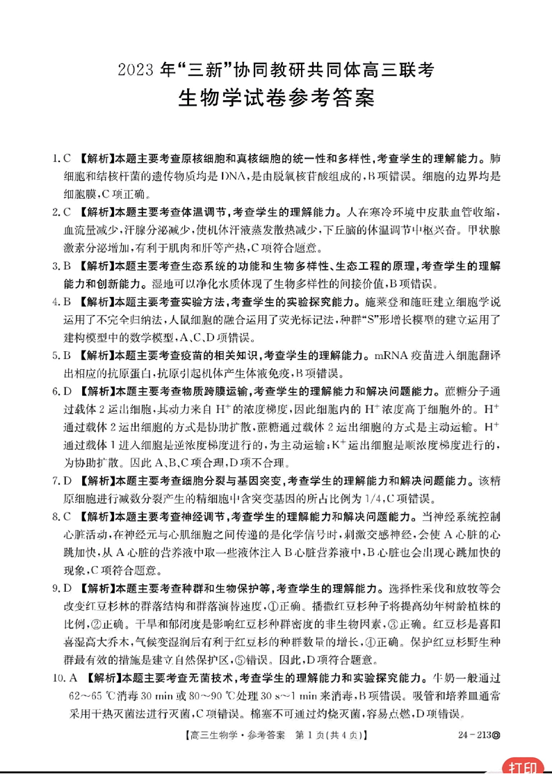 江西省“三新”协同教研共同体2023-2024学年高三上学期12月联考 生物答案