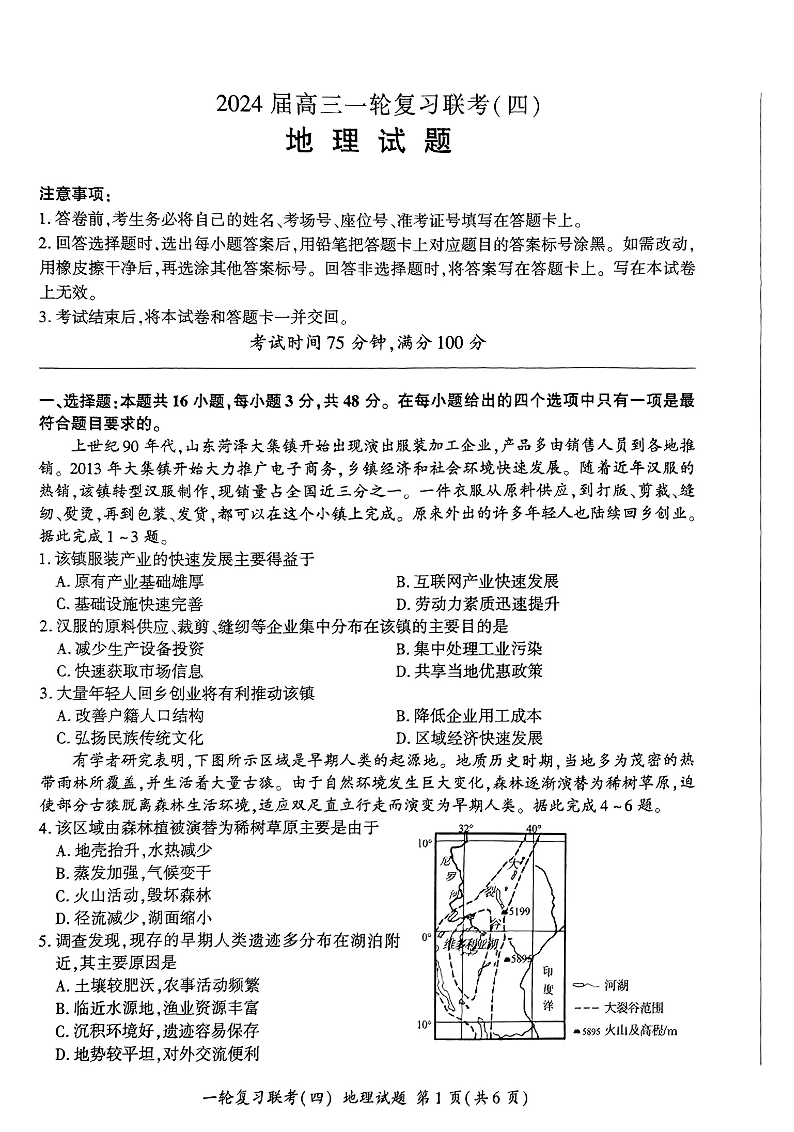 百师联盟2023-2024学年高三上学期一轮复习联考(四) 地理