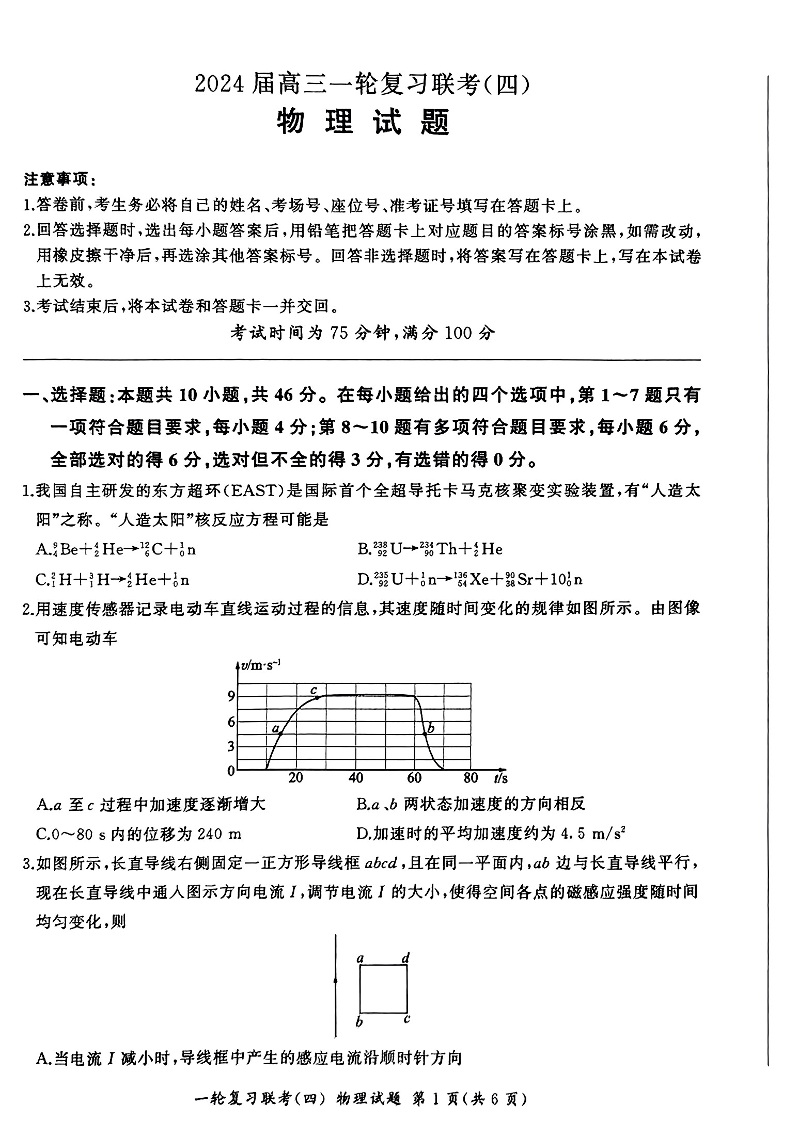 百师联盟2023-2024学年高三上学期一轮复习联考(四) 物理