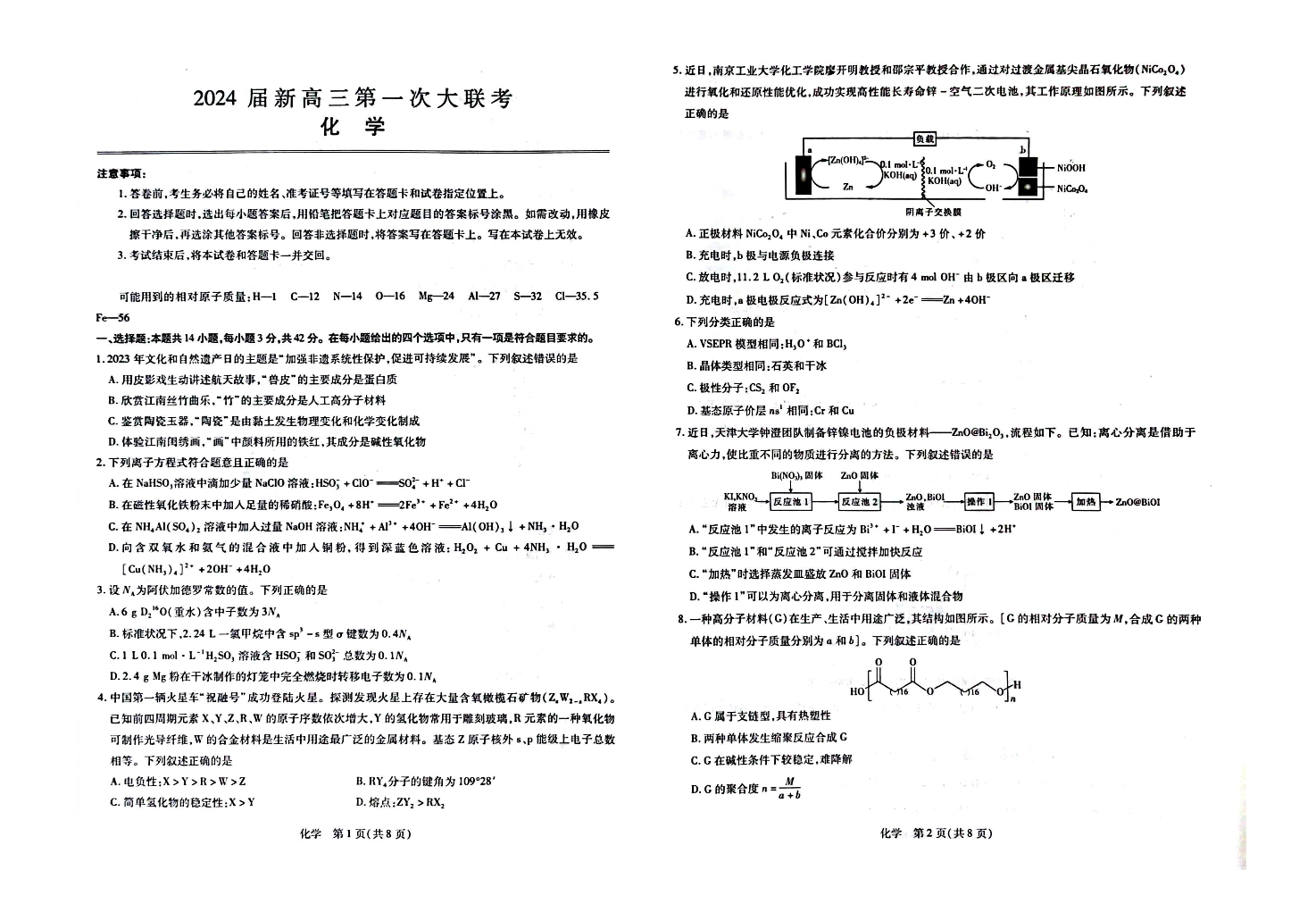 2024届江西省新高三第一次稳派大联考 化学