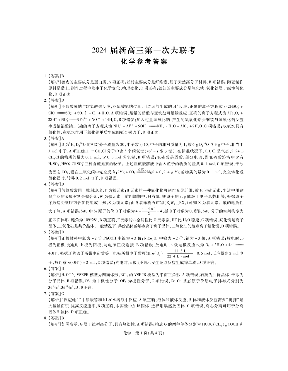 2024届江西省新高三第一次稳派大联考 化学答案